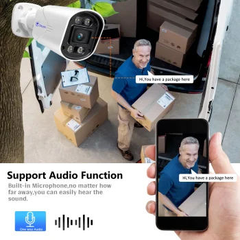 This high-performance 8MP  security cctv camera Outdoor delivers Ultra HD 3840*2160 resolution through its advanced 1/2.8″ CMOS sensor and latest image processing chipset. The starlight-grade lens provides exceptional low-light performance, capturing clear images even in near-darkness (0.01 Lux). The camera’s rugged IP66-rated metal housing withstands harsh weather conditions (-30°C to 60°C) for reliable outdoor operation. Compatible Hikvision Dahua Reolink NVR.